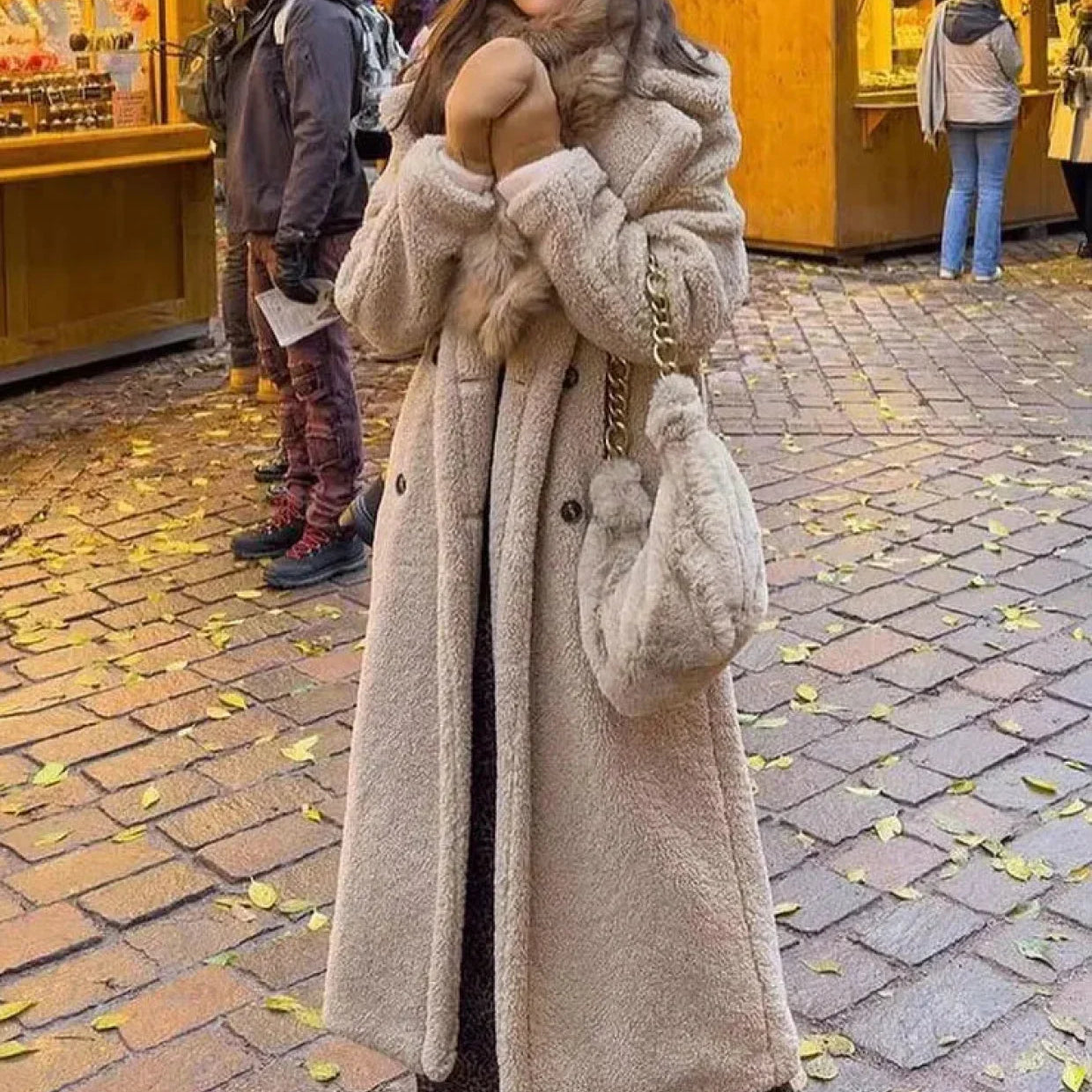 Elegante cappotto marrone in lana con cappuccio