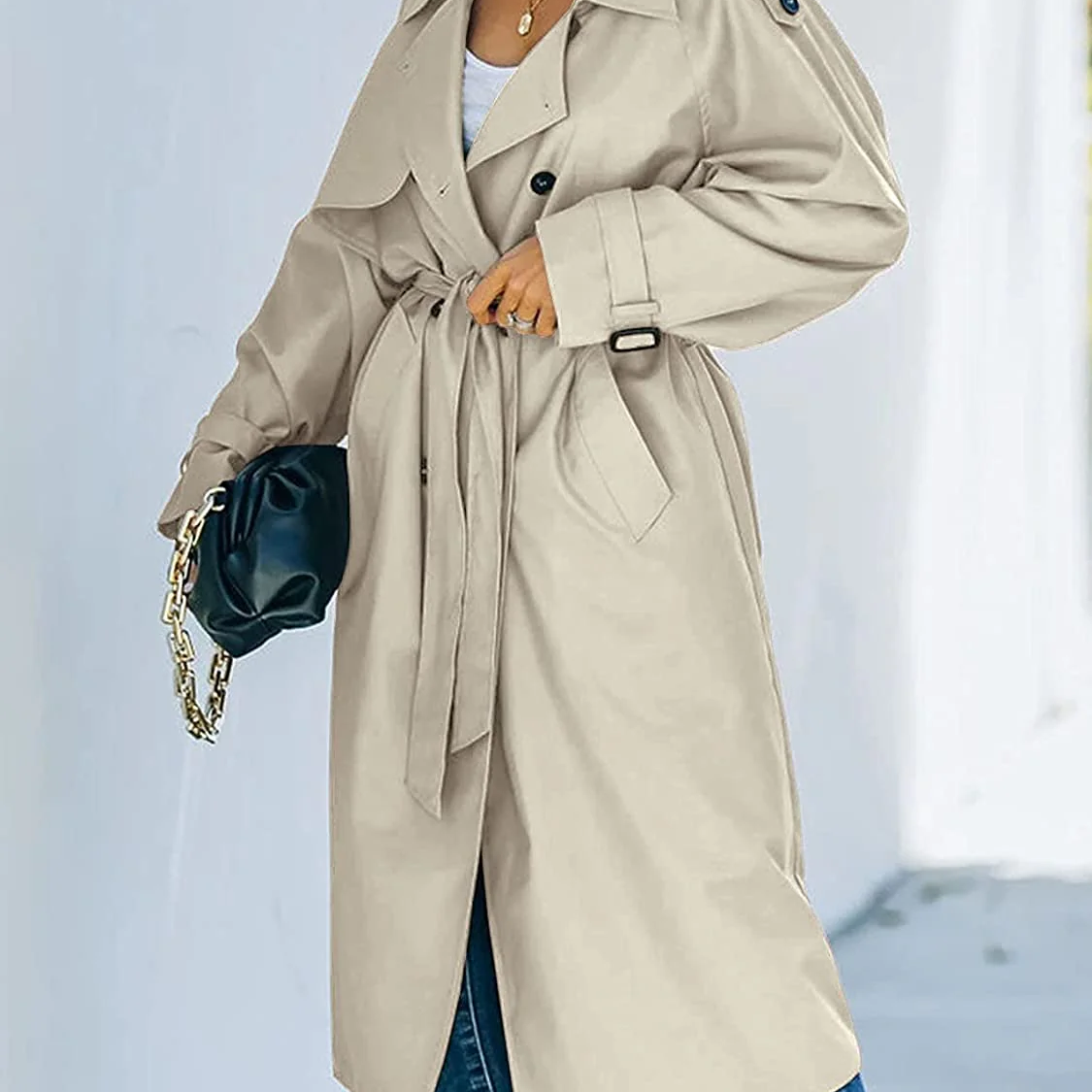 Trench da donna – Taglio classico – Doppiopetto – Collo sartoriale – Lunghezza media