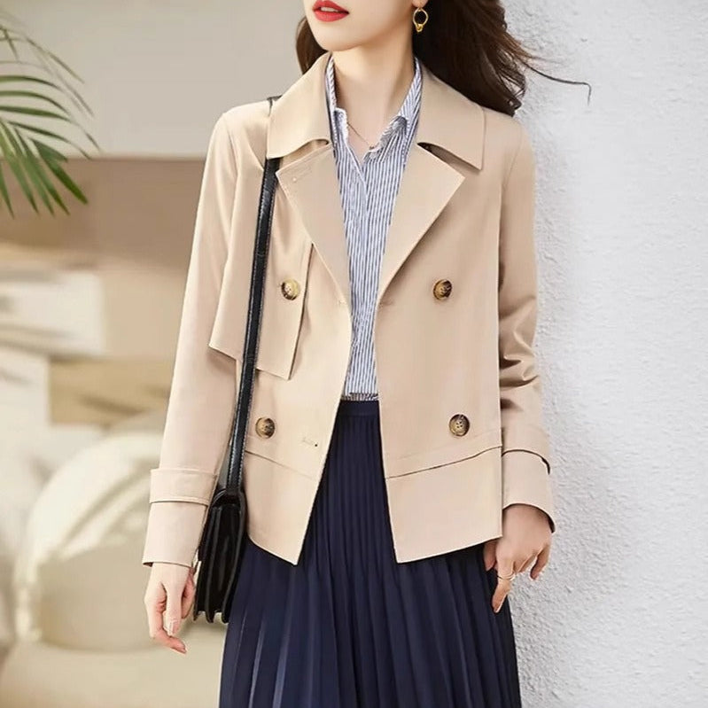 Trench da donna – Vestibilità slim – Corto – Doppiopetto – Allacciatura in vita