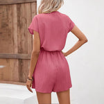 Pantaloncini da tuta da donna – Vestibilità comoda – Tessuto a coste – Scollo a V con bottoni – Vita regolabile