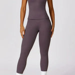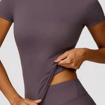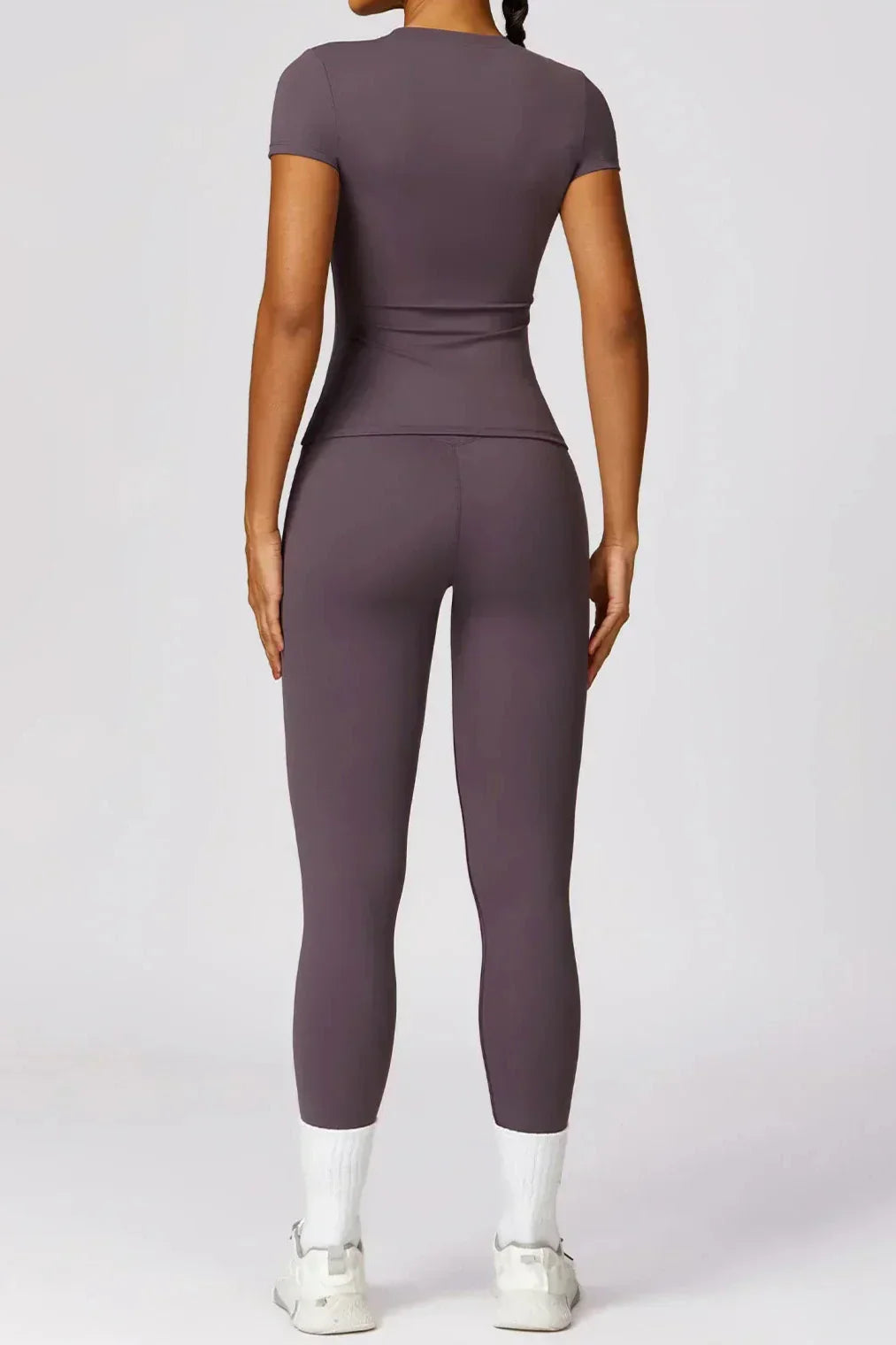 Completo sportivo da donna – Leggings a vita alta – T-shirt aderente a maniche corte