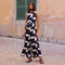 - Design: Vestibilità ampia con stampa astratta e cintura in vita