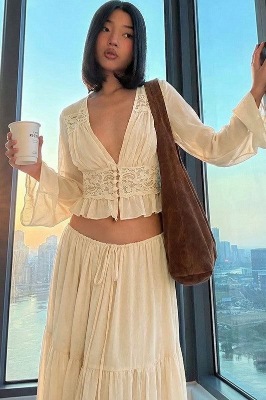 Completo gonna con lacci in pizzo e chiffon trasparente sexy