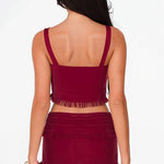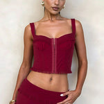 Completo gonna con pantaloncini aderenti e volant e top con bottoni automatici alla moda