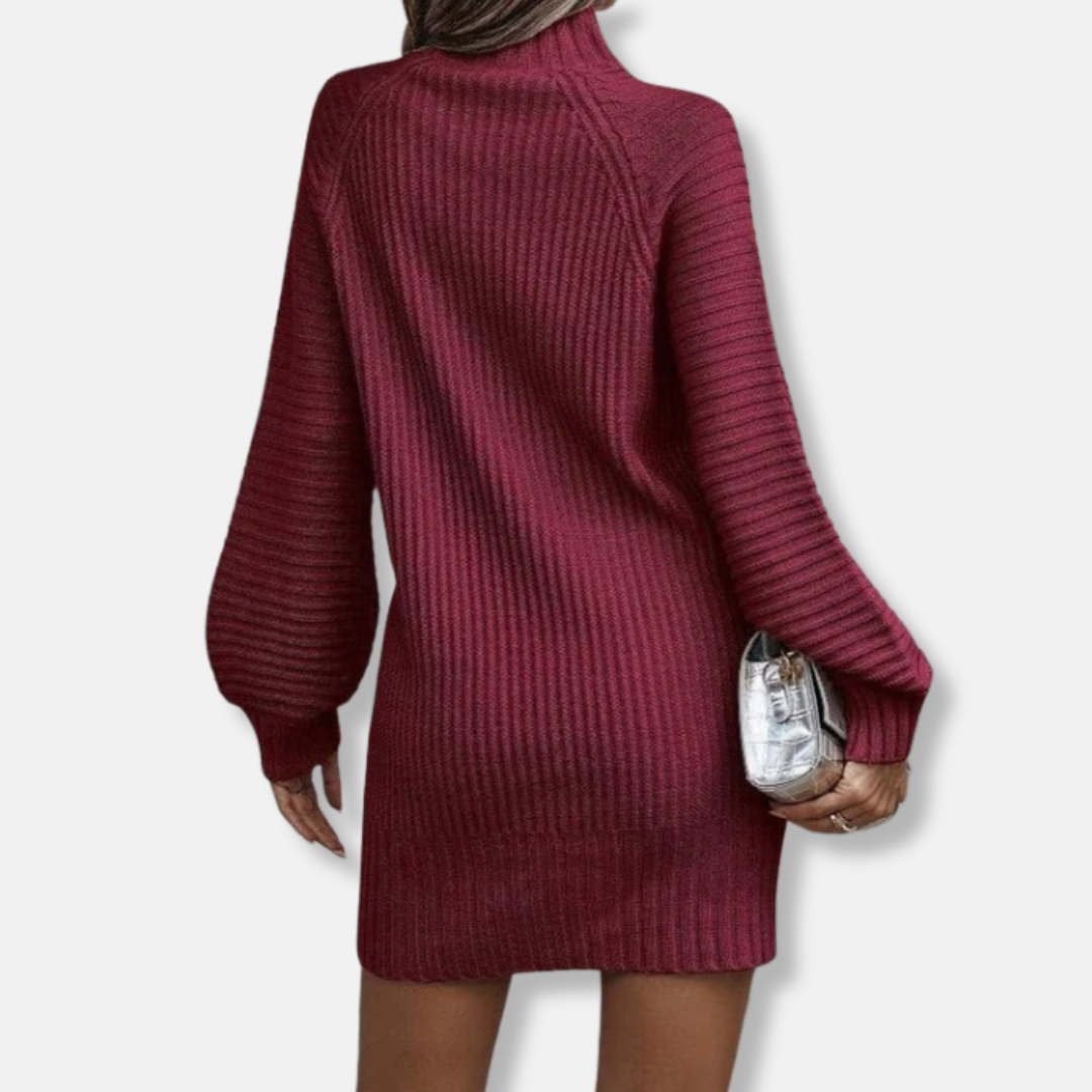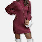 Questo abito presenta una silhouette aderente, impreziosita da un elegante collo alto e maniche lunghe. Ideale per l'uso quotidiano, offre un look sofisticato e confortevole.