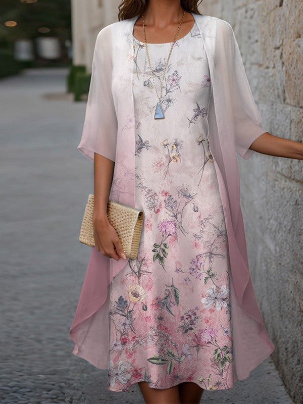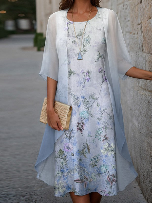 Abito due pezzi da donna – Taglio fluido – Voile leggero – Stampa floreale – Lunghezza midi
