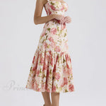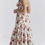Trasforma qualsiasi outfit in un capo sofisticato e lussuoso con questo dolce e piccante abito midi floreale con schiena scoperta.