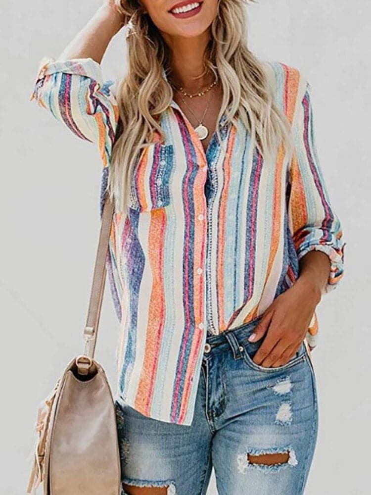 Camicia da donna - Cotone traspirante - Vestibilità classica - Elegante motivo colorato